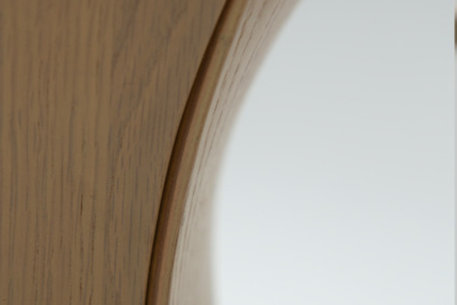 Η στρογγυλή επιφάνεια από καπλαμά δρυός σε whitewashed απόχρωση αναδεικνύει τη φυσική υφή του ξύλου και προσδίδει φωτεινότητα στον χώρο. Το compact μέγεθός του το καθιστά ιδανικό για χρήση δίπλα σε καναπέ, πολυθρόνα ή ακόμη και ως κομοδίνο.