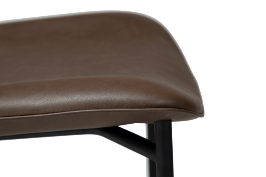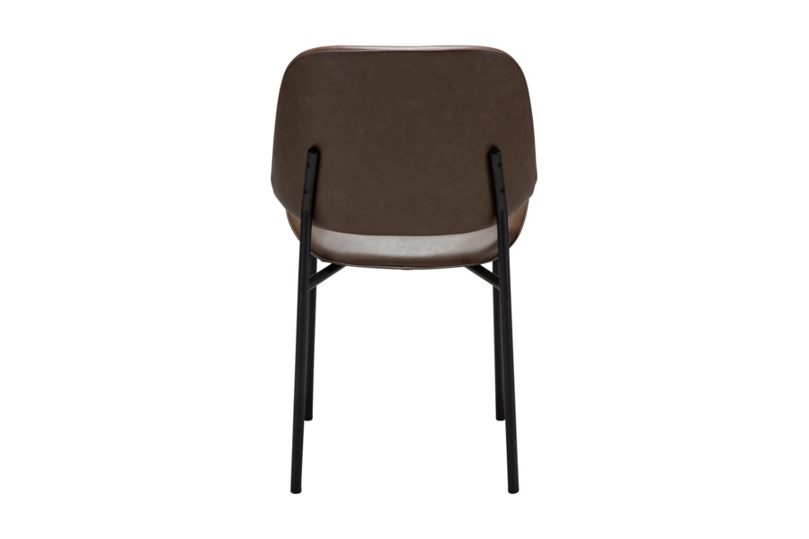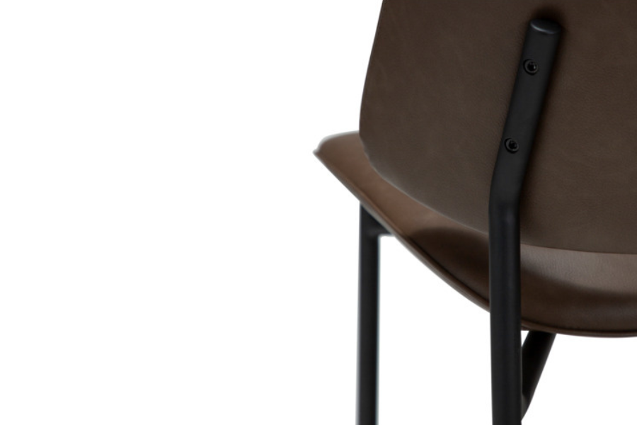 Η απαλά καμπυλωτή πλάτη και το στρογγυλεμένο κάθισμα προσφέρουν εργονομία και άνεση, ενώ η επένδυση από τεχνητό δέρμα χαρίζει κομψότητα και ευκολία στη συντήρηση. Τα μεταλλικά πόδια με διακριτικό και κομψό σχεδιασμό ενισχύουν τη σταθερότητα και προσθέτουν μία refined αισθητική στο σύνολο.