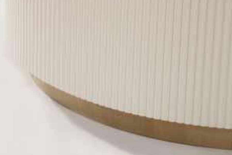 Ο στρογγυλός του σχεδιασμός με ανάγλυφη κατακόρυφη υφή στη βάση δημιουργεί ένα διακριτικό αλλά ιδιαίτερο αποτέλεσμα, που προσθέτει χαρακτήρα στον χώρο χωρίς να τον επιβαρύνει.
