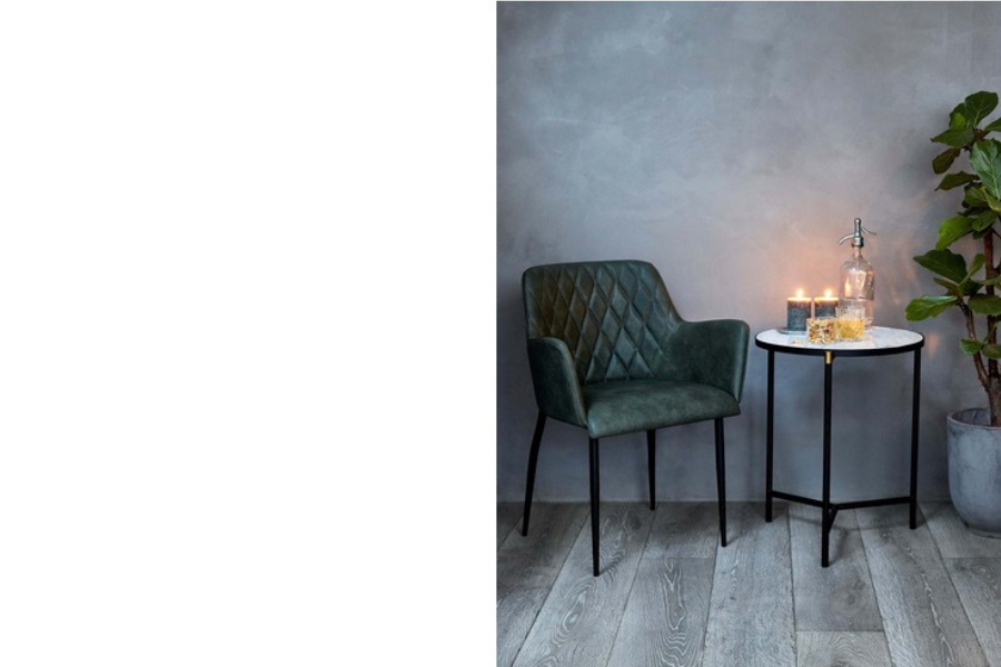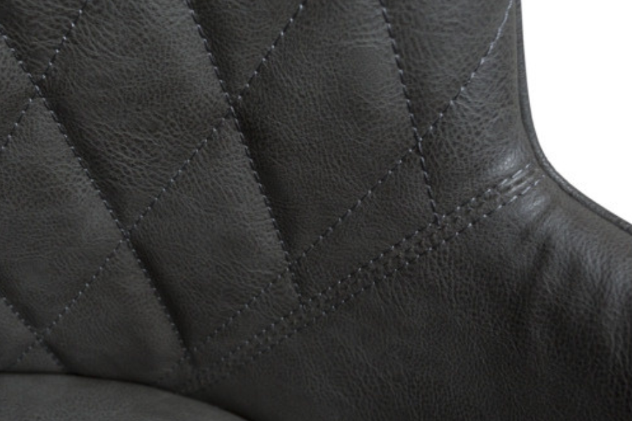 Η επένδυση από τεχνητό δέρμα σε απόχρωση Grey προσφέρει την αίσθηση του αυθεντικού vintage δέρματος, ενώ παράλληλα είναι πρακτική και εύκολη στη συντήρηση. Το κάθισμα και τα μπράτσα είναι σχεδιασμένα ώστε να προσφέρουν άνεση και στήριξη, καθιστώντας την ιδανική για καθημερινή χρήση αλλά και για μεγαλύτερες συγκεντρώσεις.