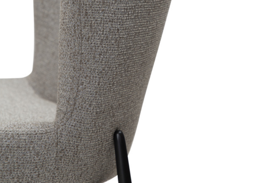 Η επένδυση από bouclé ύφασμα σε pebble grey απόχρωση προσφέρει διακριτική υφή και ουδέτερο χαρακτήρα, ιδανικό για κάθε σύγχρονο χώρο.