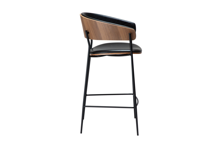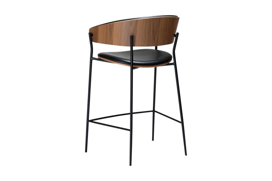 Το σκαμπό Crib Vintage Black Leather / Walnut Veneer, σχεδιασμένο από το studio Georgsen, συνδυάζει την αισθητική του mid-century design με μια σύγχρονη και κομψή προσέγγιση. Η καμπυλωτή πλάτη από καπλαμά καρυδιάς δημιουργεί μια ζεστή και φυσική αίσθηση, ενώ η εσωτερική επένδυση από vintage black δέρμα προσθέτει βάθος και εκλεπτυσμένο χαρακτήρα.