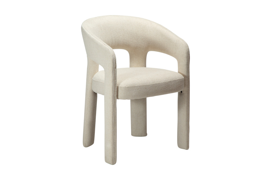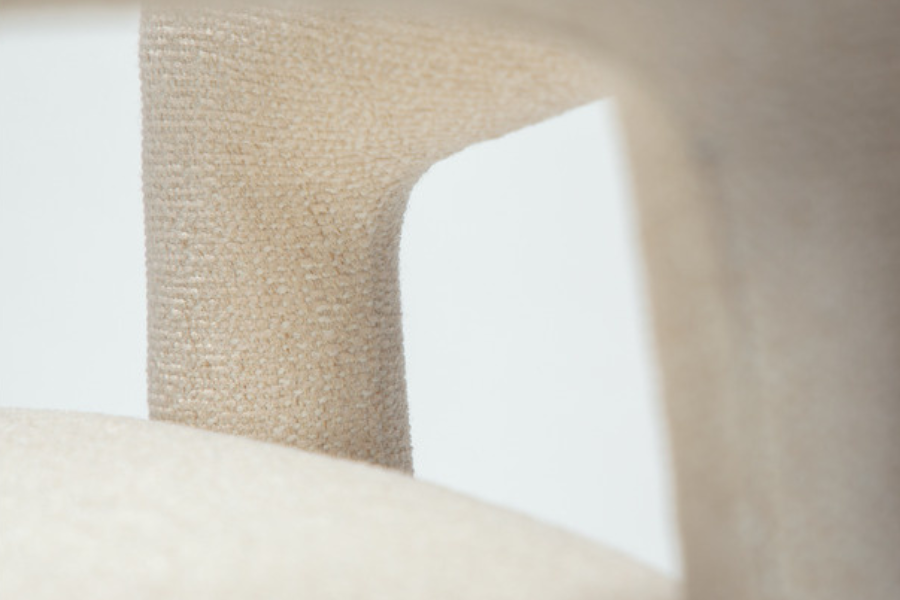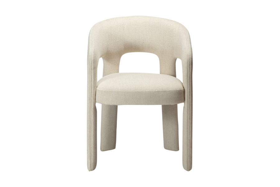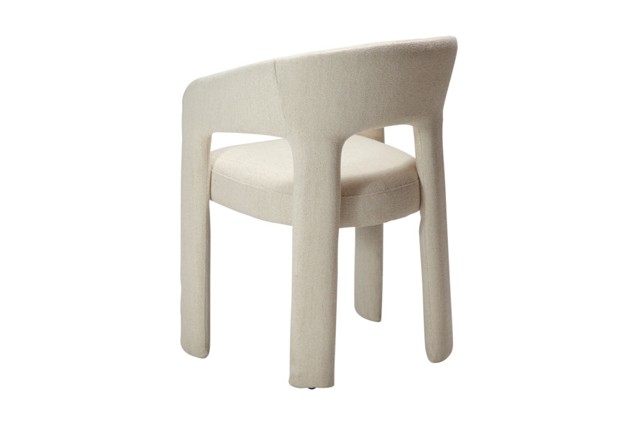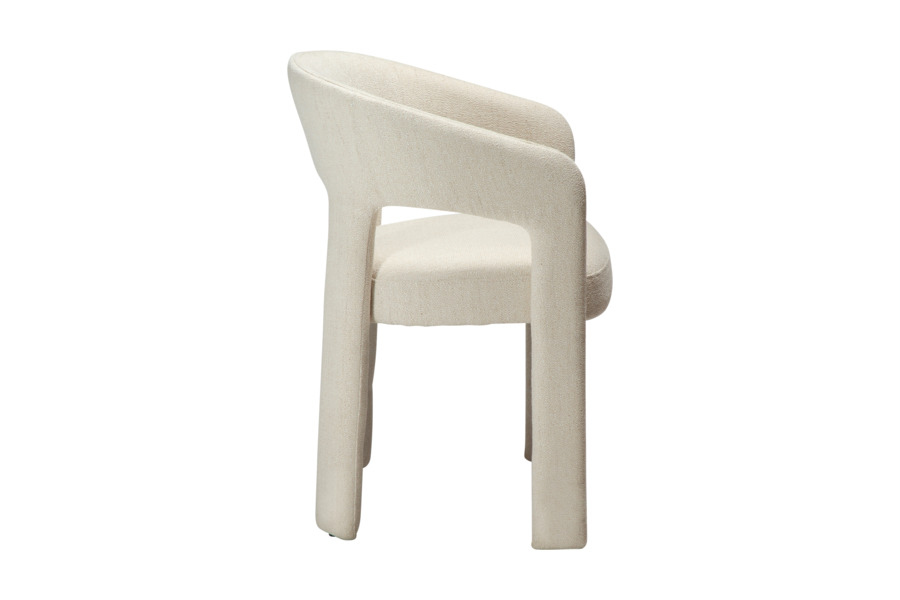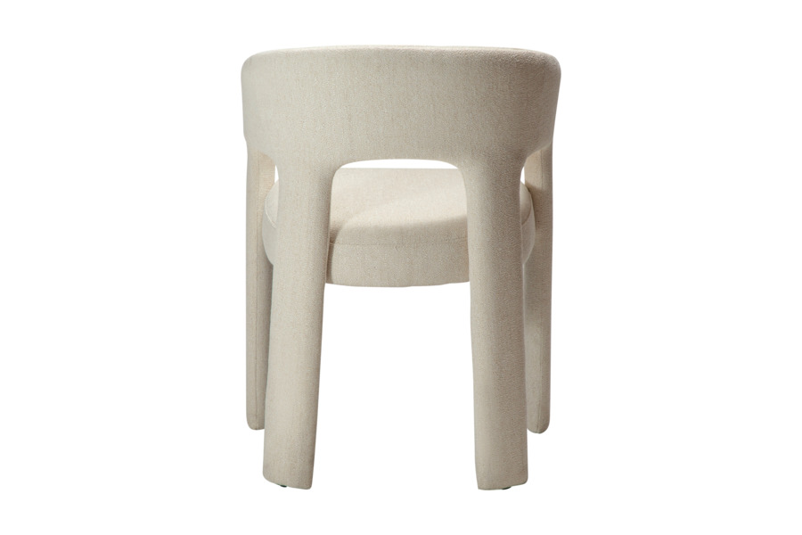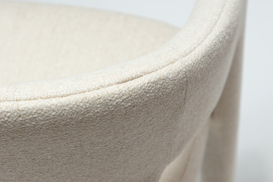 Η επένδυση από ύφασμα boucle σε απόχρωση raven black προσφέρει πλούσια υφή και κομψότητα, ενώ ενισχύει την αίσθηση πολυτέλειας. Το κάθισμα είναι ευρύχωρο και άνετο, με εργονομική πλάτη που αγκαλιάζει το σώμα, καθιστώντας την καρέκλα ιδανική για καθημερινή χρήση αλλά και για ιδιαίτερες περιστάσεις.