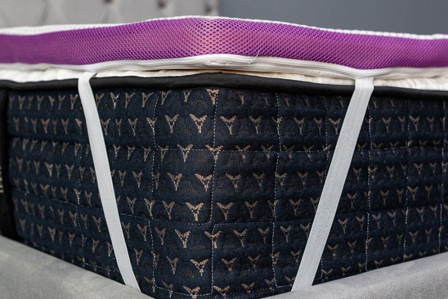 Τα ελαστικά λάστιχα στις τέσσερις γωνίες εξασφαλίζουν σταθερή τοποθέτηση πάνω στο στρώμα, χωρίς μετακινήσεις. Παράλληλα, το ανώστρωμα απορροφά τους κραδασμούς και παρατείνει τη διάρκεια ζωής του κύριου στρώματος.
