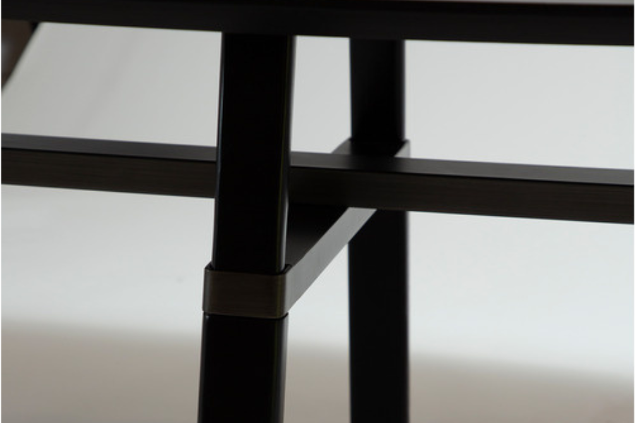 Το ξεχωριστό στοιχείο του τραπεζιού είναι η βάση με τα διασταυρωμένα ξύλινα πόδια, τα οποία αναδεικνύουν την ποιότητα κατασκευής και τη δεξιοτεχνία στις ενώσεις. Ο συνδυασμός στιβαρότητας και εκλεπτυσμένου design δημιουργεί ένα τραπέζι που δεν περνά απαρατήρητο.