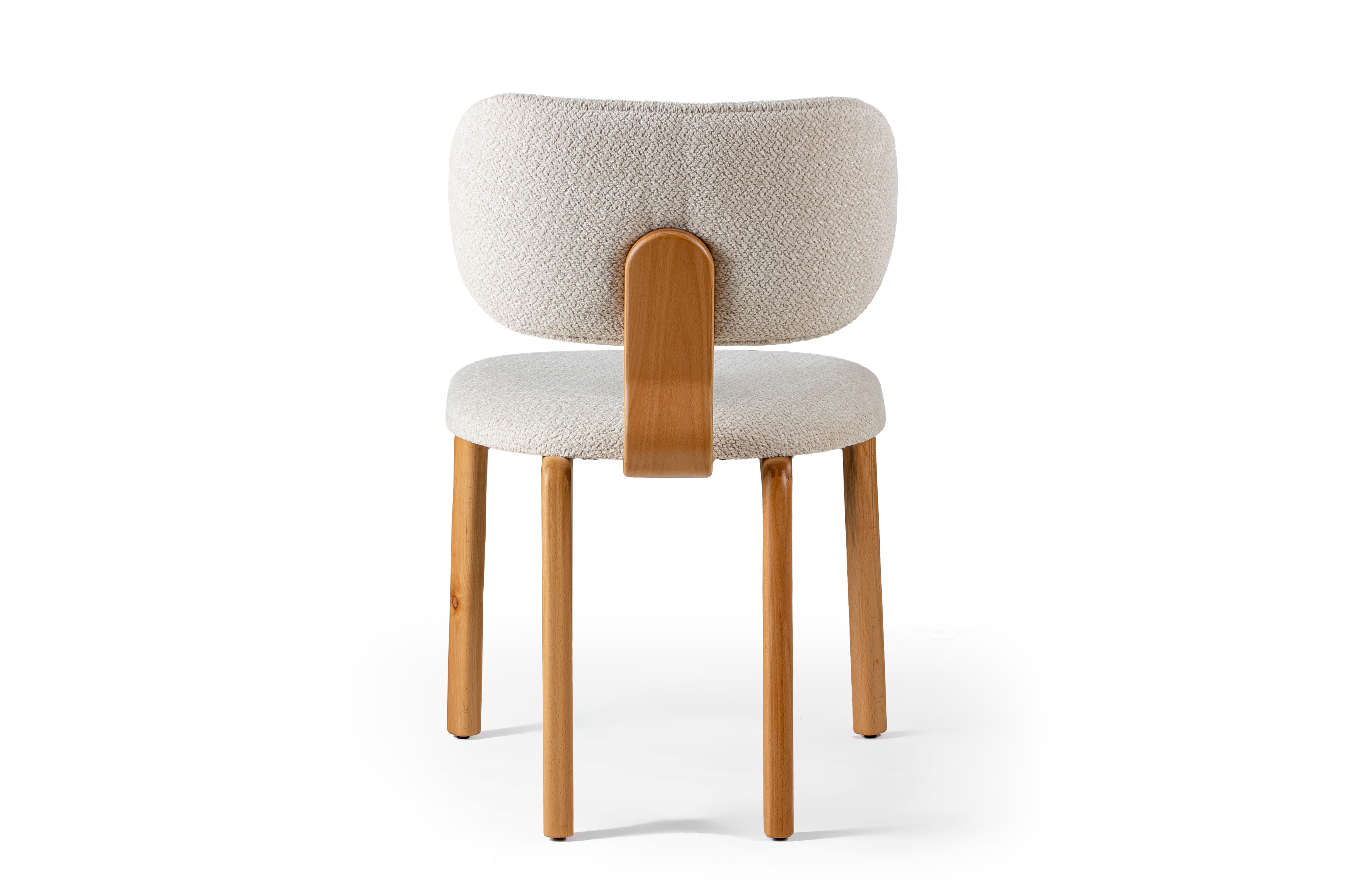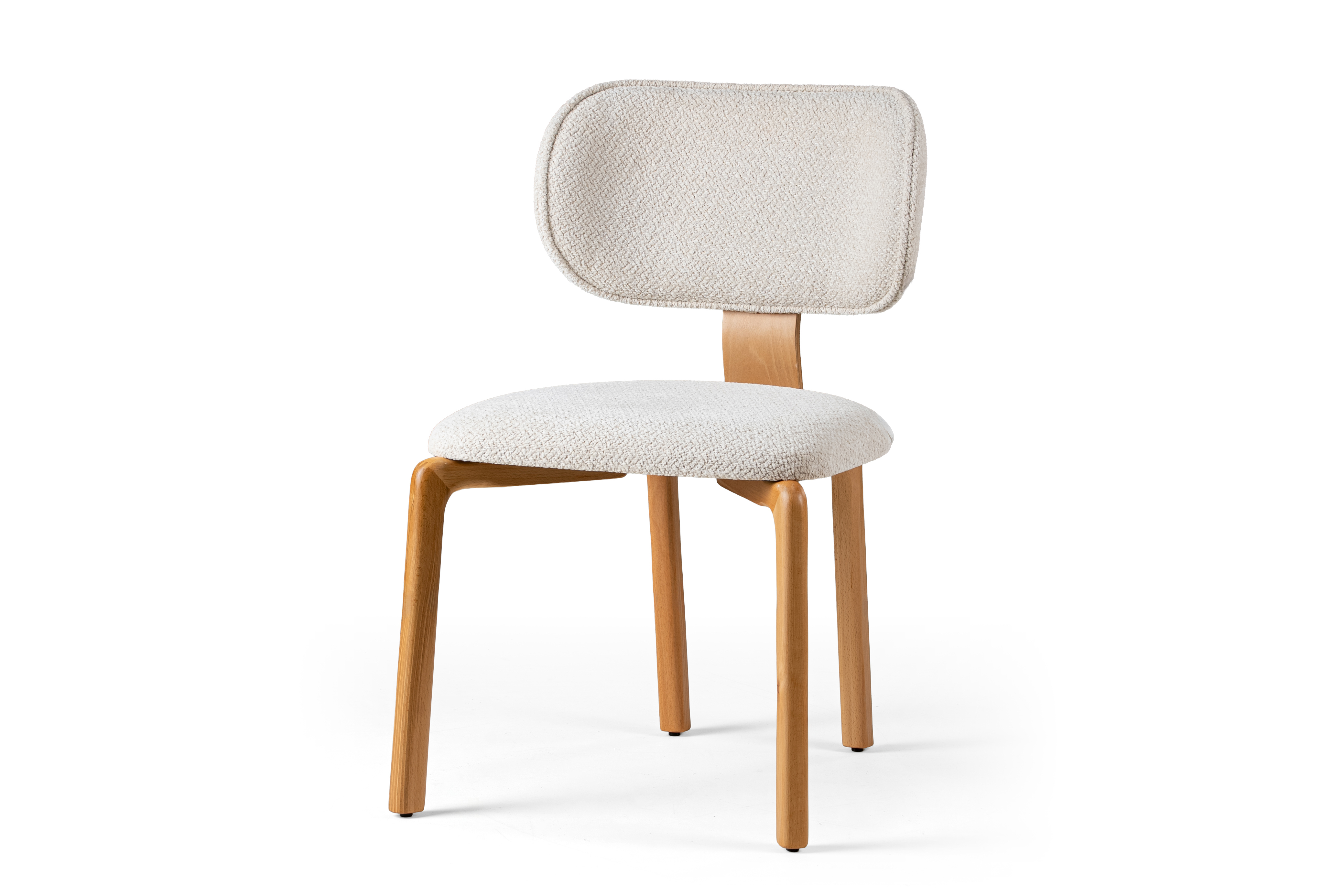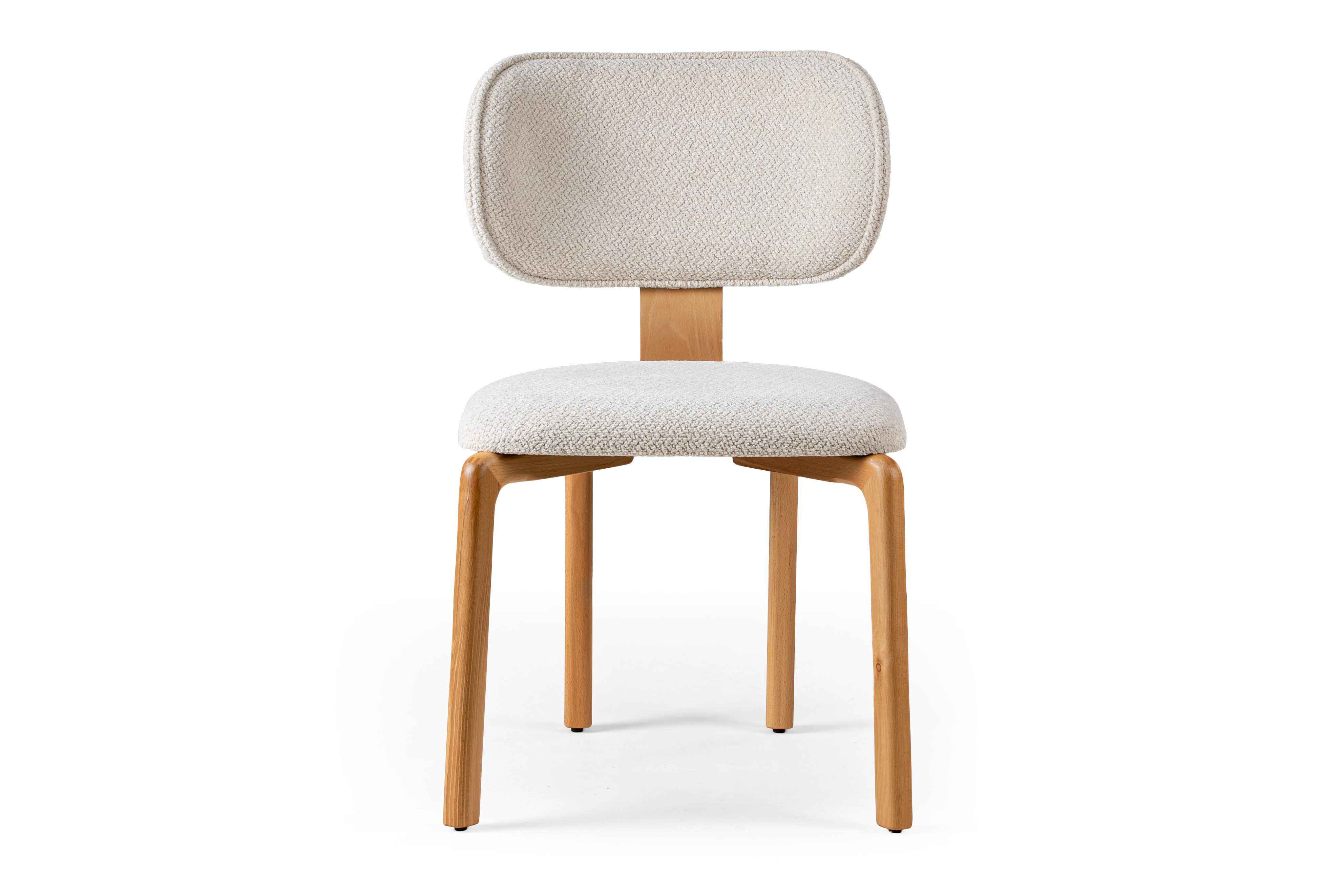 Η καρέκλα τραπεζαρίας Yay ξεχωρίζει για τον μοντέρνο σχεδιασμό και την άνεση που προσφέρει, ιδανική για κάθε σύγχρονο και minimal εσωτερικό χώρο. Κατασκευασμένη από μασίφ ξύλο οξιάς σε φυσικό χρώμα, προσφέρει ανθεκτικότητα και διαχρονικό στυλ. Το κάθισμα και η πλάτη επενδύονται με πολυτελές μπεζ μπουκλέ ύφασμα, χαρίζοντας απαλή υφή και αίσθηση πολυτέλειας.