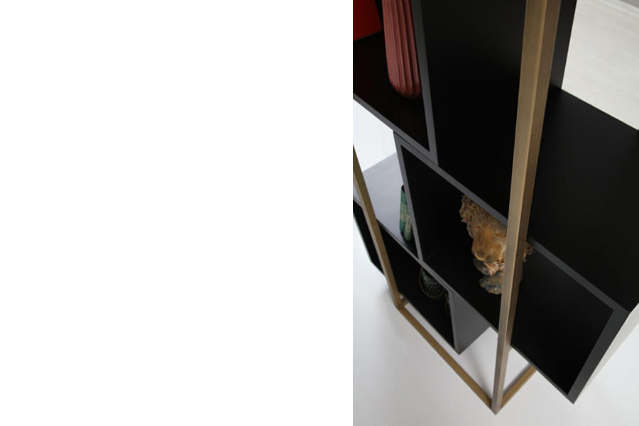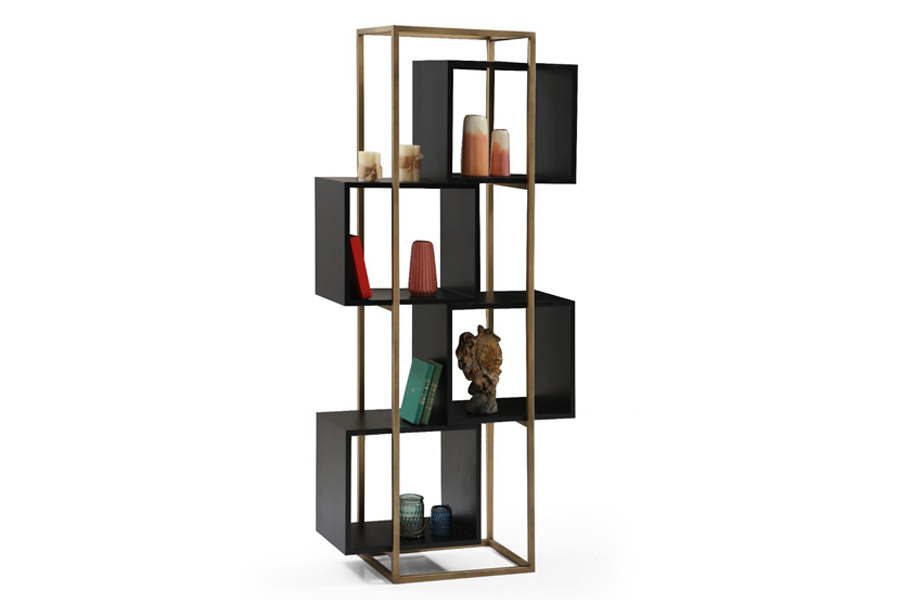 The CRUZE BLACK & BRASS Bookshelf is a striking storage solution that stands out with its geometric design. The combination of black metal with brass details gives a luxurious and modern aesthetic, making it ideal for contemporary and industrial spaces. Its asymmetrical shelves create a dynamic look and offer ample space for decorating and organizing books, accessories, and art pieces.