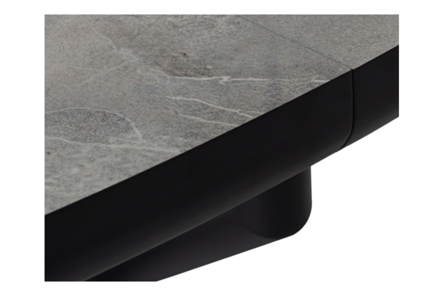 The Atlantic dining table blends dynamic design with functionality. Its HPL (High Pressure Laminate) top offers top-tier resistance to scratches, moisture, and heat, while the softly curved shape adds elegance to any space.