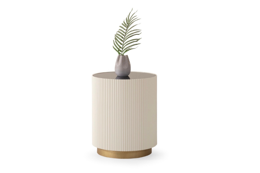 The Olivia Ecru side table is a refined and elegant addition to modern living spaces.
