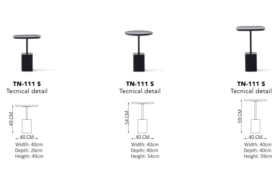 Each piece in the Vega set is crafted from high-quality metal with a matte black finish, ensuring maximum durability and stability. The robust rectangular bases act as a steady counterweight to the slender, elegant stems supporting the tops. The set features a mix of circular and square surfaces with rounded edges, adding a subtle variety to the overall composition.