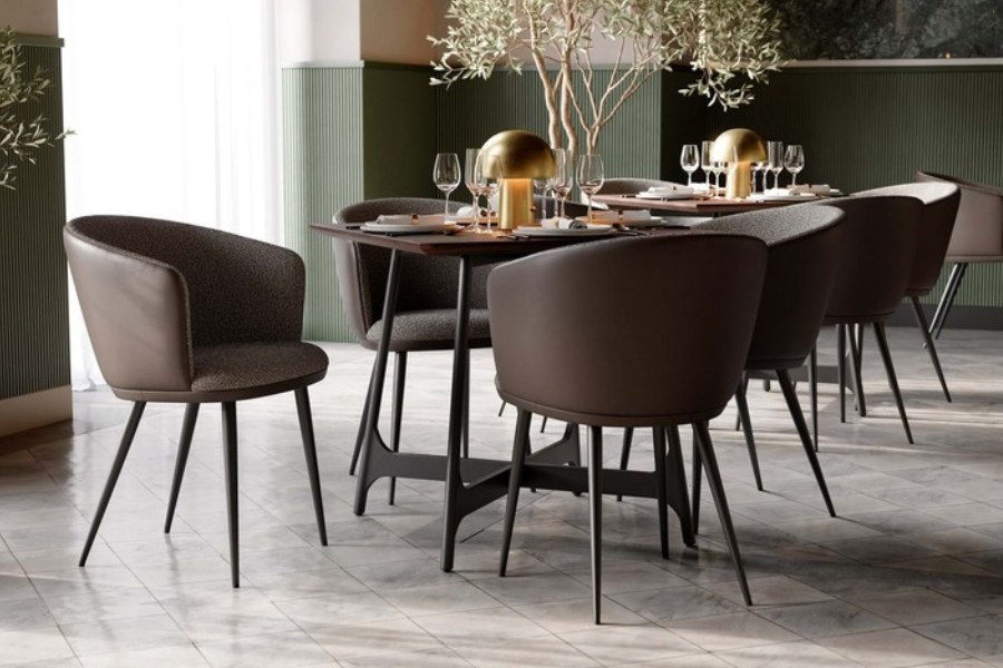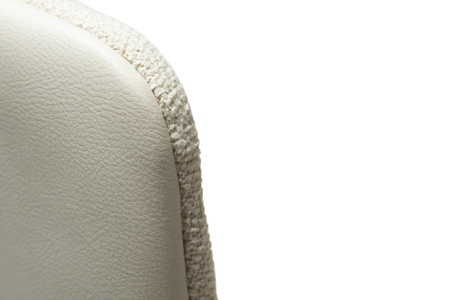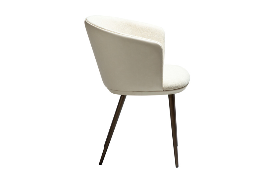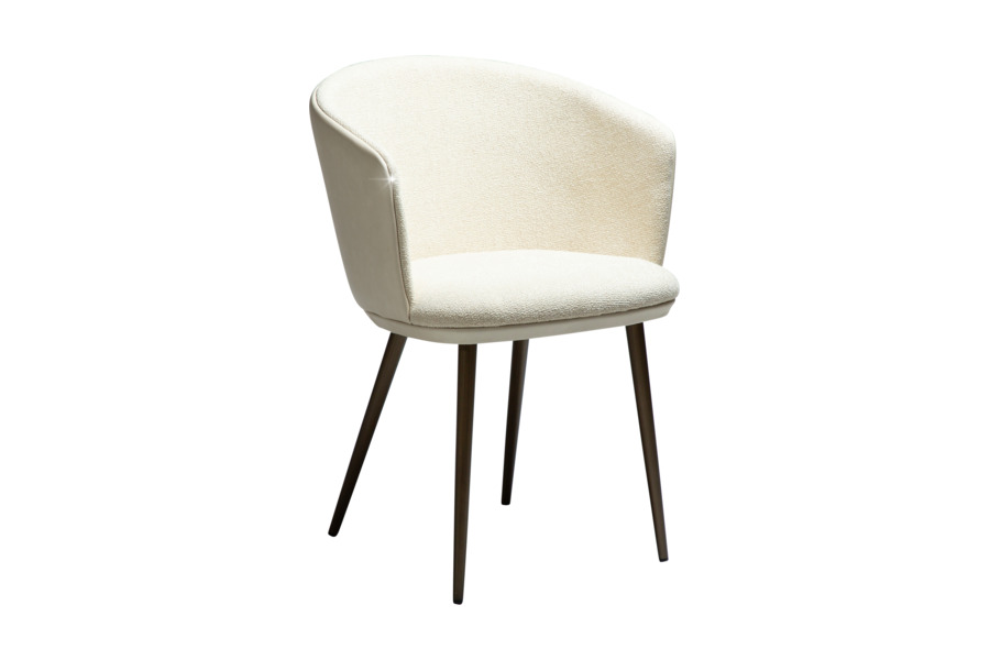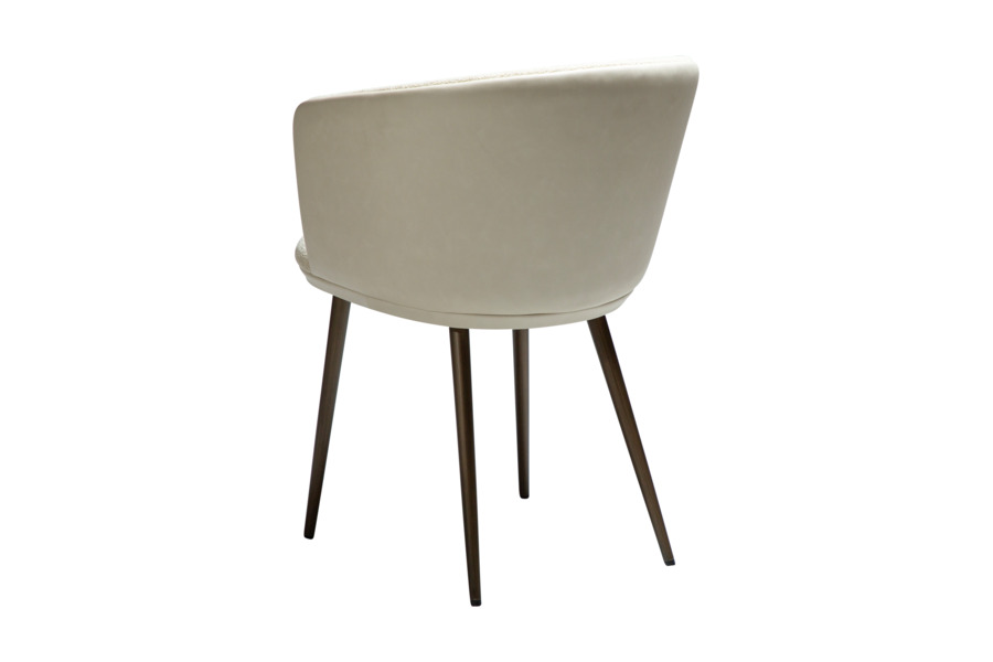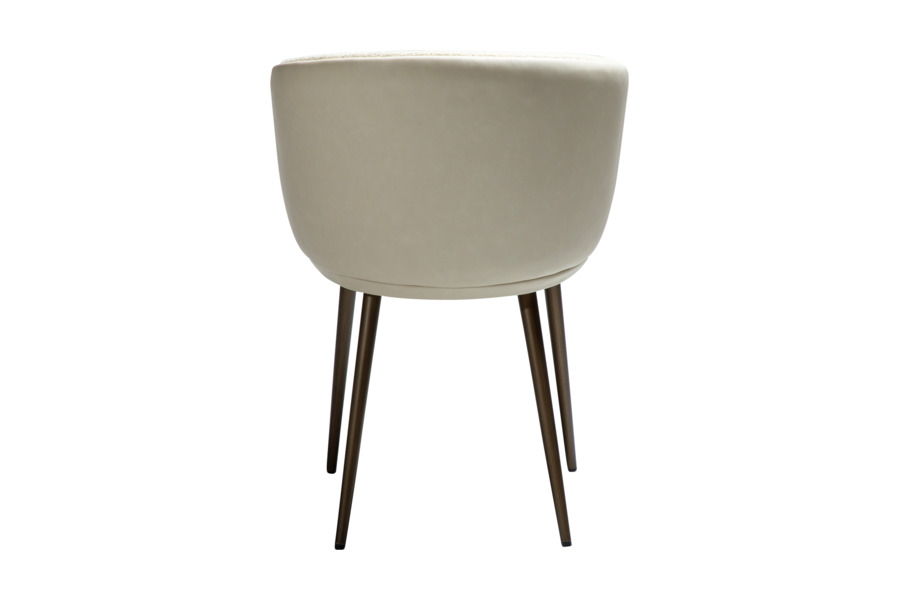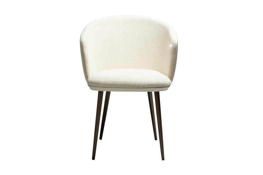The HEY Frosted Almond armchair stands out with its elegant and light-toned appearance, making it an ideal choice for modern and minimalist interiors. Upholstered in a refined combination of fabric and faux leather, it offers a luxurious texture and feel. The curved backrest with integrated armrests ensures ergonomic comfort, while the antique brass metal legs provide stability and add a warm, sophisticated touch. Perfect for dining areas or professional environments with elevated design standards.