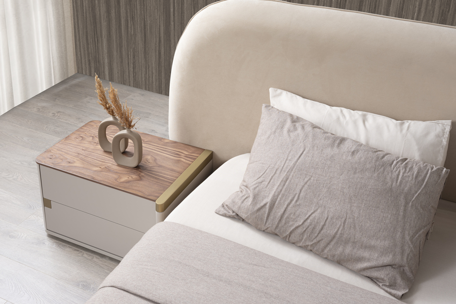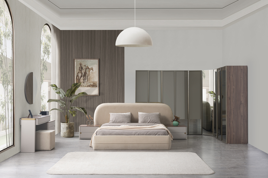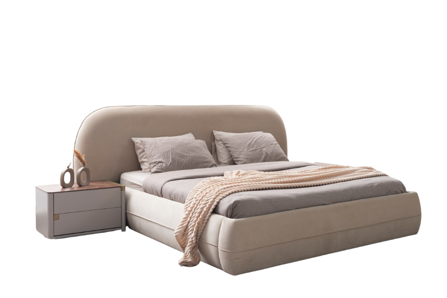 Delta Upholstered Bed with Storage combines modern design with practicality, making it an ideal choice for a stylish and organized bedroom. Its soft curves and fabric upholstery create a warm and inviting atmosphere.